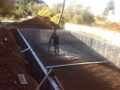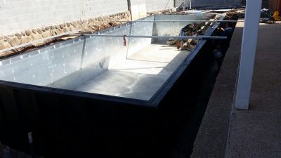 בסיום בניית גוף הבריכה הדפנות החיצוניות עוברות ציפוי בחומר אנטי קורוזיה העמיד למשך שנים.